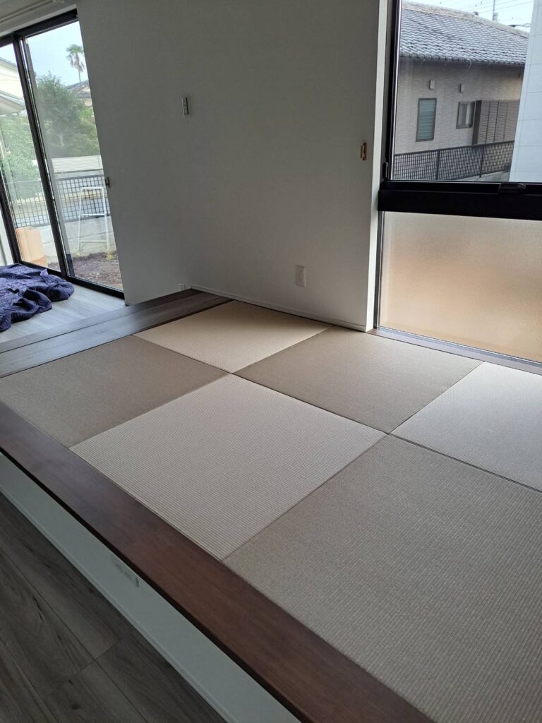 本庄市ある◯◯建設様の小島分譲地に和紙畳を納めました。ワークスペースと畳コーナーにそれぞれ銀白色はい桜色かっこよかったなー