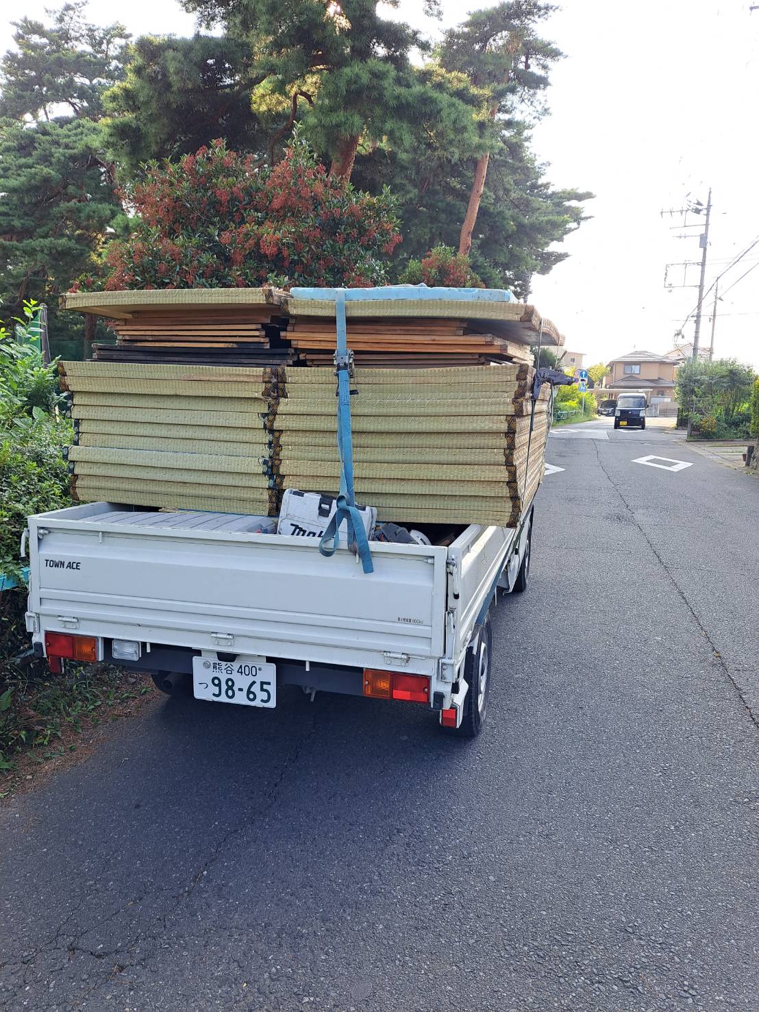 朝一で中之条町営住宅に畳納め